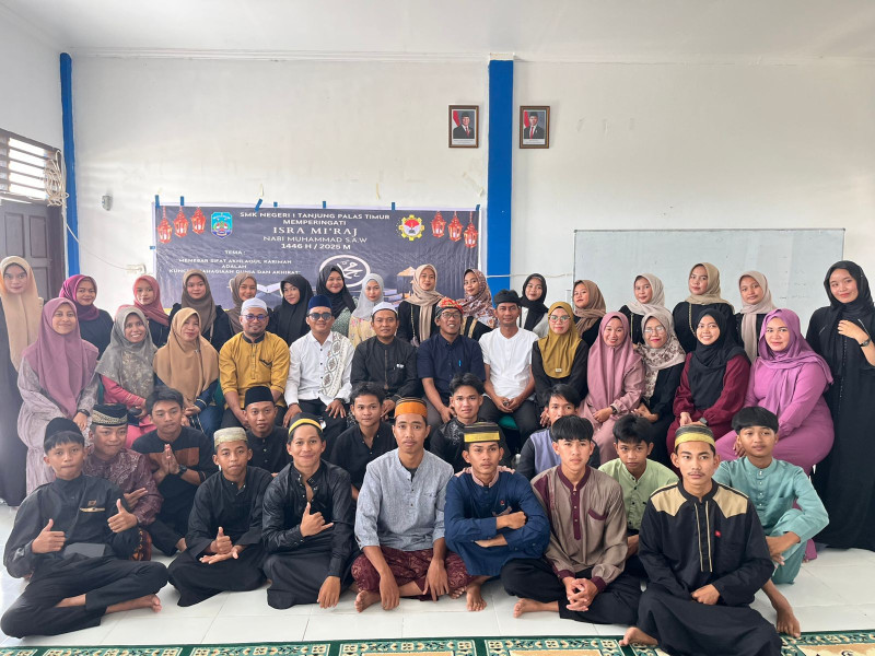 Tanjung Palas Timur, Jumat 31 Januari 2025 – SMK Negeri 1 Tanjung Palas Timur menggelar peringatan Isra Mi'raj Nabi Muhammad SAW dengan penuh khidmat pada 31 Januari 2025. Acara ini diikuti oleh seluruh warga sekolah, termasuk kepala sekolah, dewan guru, staf, serta para siswa-siswi.